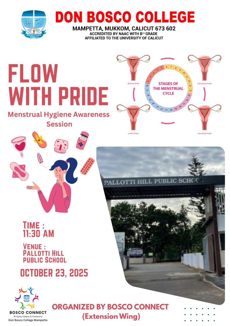 The session was conducted by the Don Bosco College, Mukkam, and focused on promoting health education, breaking taboos, and encouraging open discussion about menstrual health. The interactive session helped students understand the importance of personal hygiene and self-care during menstruation.